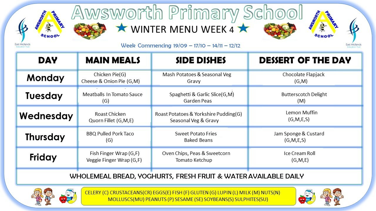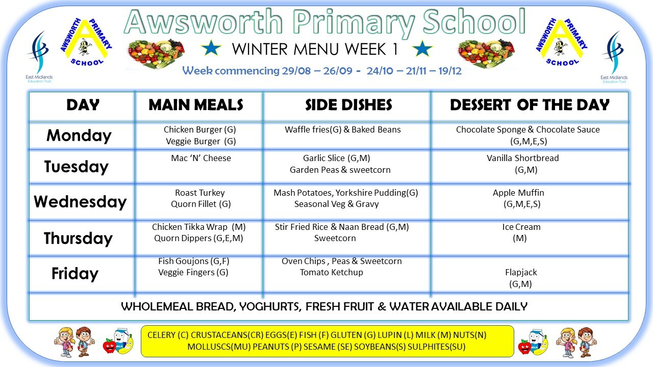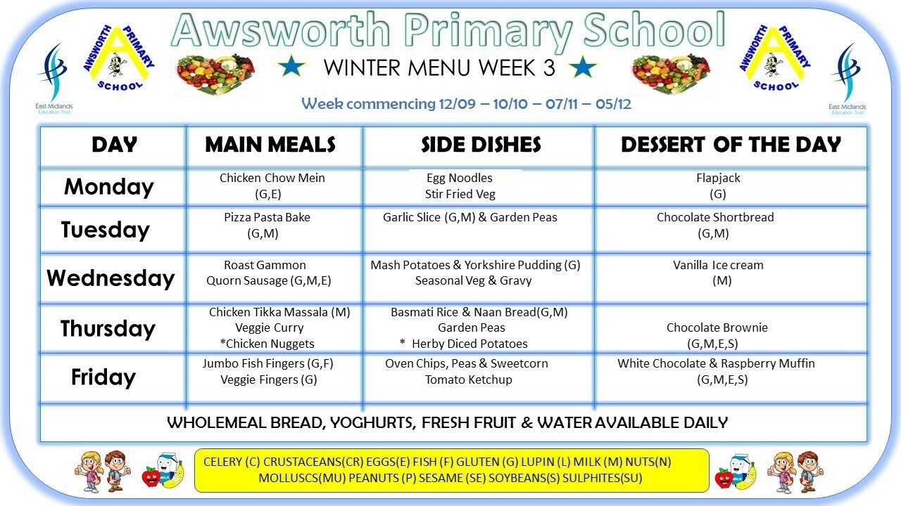Please see below for our latest menu’s. We have 3 menus on a rolling schedule.